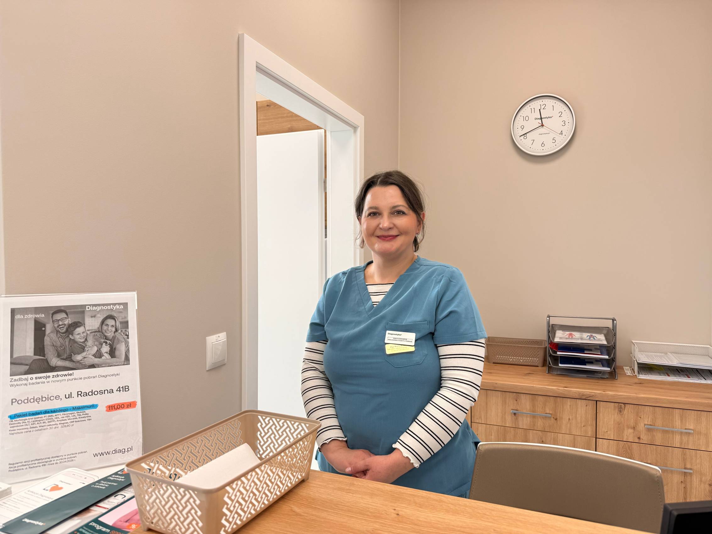 W nowym punkcie pobrań Diagnostyki, w Poddębicach przy ul. Radosnej 41b od 16 marca do 30 kwietnia 2026 roku trwa akcja profilaktyczna, w ramach której pakiet maksimum złożony z 18 badań kosztuje 111 zł*. Punkt pobrań jest czynny codziennie od poniedziałku do piątku w godzinach 7:30-12:00, w soboty od 08:00-12:00.