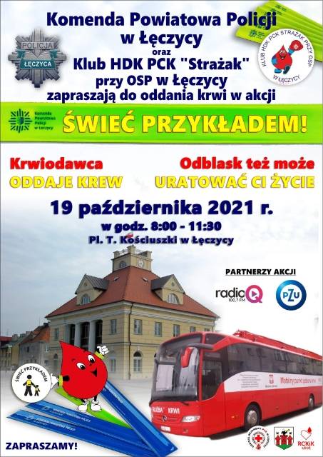 Policjanci z łęczyckiej komendy oraz przedstawiciele klubu HDK PCK „Strażak" zapraszają już 19 października na Plac Tadeusza Kościuszki w Łęczycy, gdzie dla wszystkich będą czekały atrakcje.