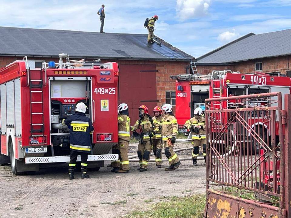 Zgłoszenie w tej sprawie do stanowiska kierowania Komendanta Powiatowego Państwowej Straży Pożarnej w Łęczycy wpłynęło przed godziną 13:00. Jak udało nam się dowiedzieć na miejscu zdarzenia, ogniem częściowo objęte było poszycie dachowe budynku gospodarczego, w którym znajdowały się m.in. maszyny rolnicze.