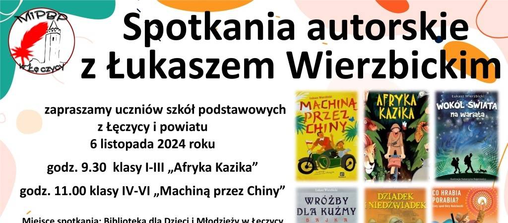 Miejska i Powiatowa Biblioteka Publiczna w Łęczycy – Biblioteka dla Dzieci i Młodzieży zaprasza nauczycieli wraz z dziećmi ze szkół podstawowych z Łęczycy i powiatu łęczyckiego na spotkania autorskie z Łukaszem Wierzbickim.