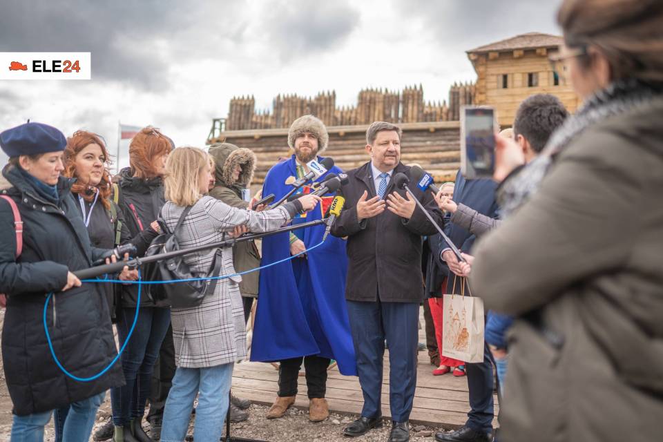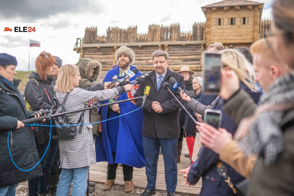 Grzegorz Schreiber, Marszałek Województwa Łódzkiego i Dominik Płaza, Dyrektor Muzeum Archeologicznego i Etnograficznego w Łodzi spotkali się z dziennikarzami oficjalnie informując o zakończeniu prac częściowej rekonstrukcji Grodziska w Tumie.