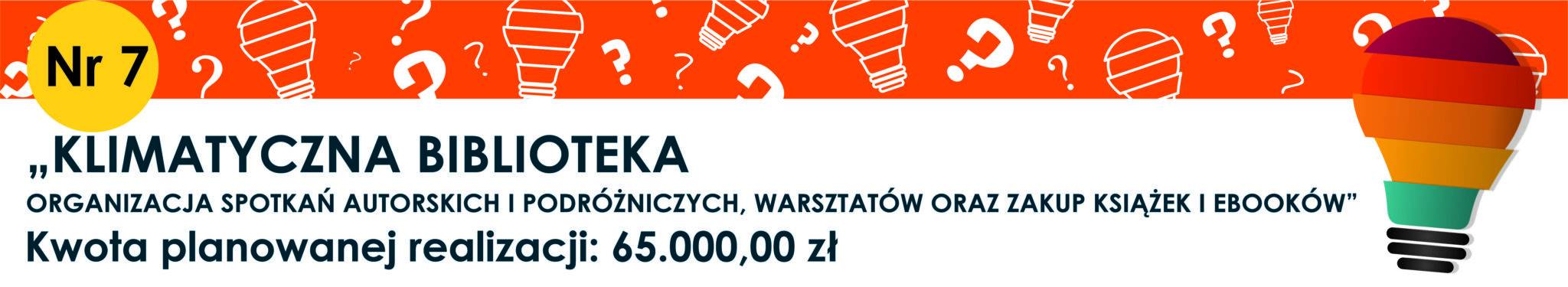 W ramach projektu „Klimatyczna biblioteka" zakłada się organizację spotkań autorskich, spotkań z ciekawymi ludźmi, warsztatów edukacyjnych, zajęć plenerowych. Wszystkie podjęte działania staną się okazją do wspólnego przebywania w bibliotece, okazją do pogłębienia więzi, zagospodarowania czasu wolnego, przygotowanie dzieci do uczestnictwa w kulturze, rozwoju zdolności manualnych i zainteresowań oraz nabycia wiedzy. Projekt zakłada również zakup książek oraz dostępu do ebooków na tabletach, smart fonach, komputerach i e-czytnikach, jak również zakup dostępu do platformy do nauki języków obcych dla dzieci i dorosłych.