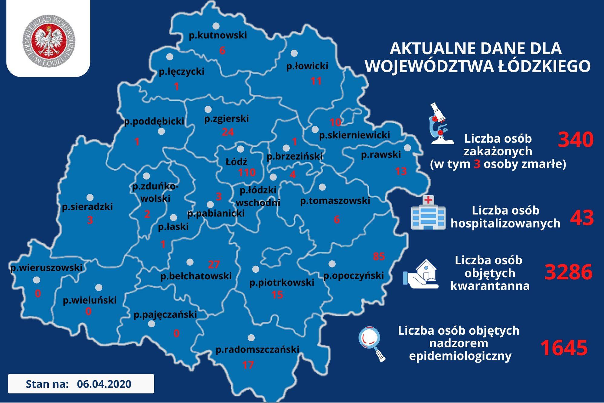 - Liczba osób z potwierdzonym zakażeniem w województwie łódzkim: 340
