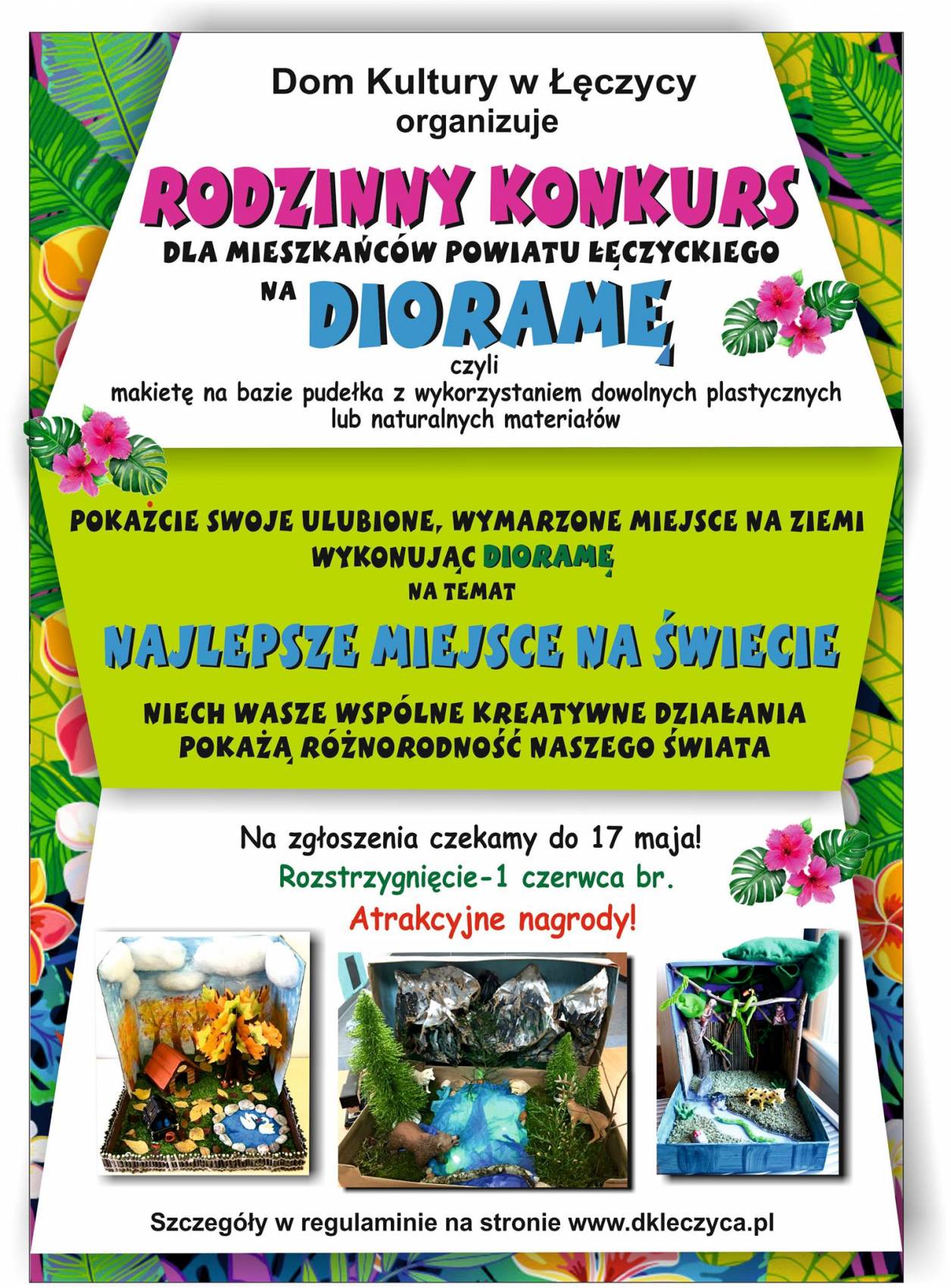 Dom Kultury w Łęczycy organizuje Rodzinny Konkurs dla mieszkańców powiatu łęczyckiego na Dioramę, czyli makietę na bazie pudełka z wykorzystaniem dowolnych plastycznych lub naturalnych materiałów.