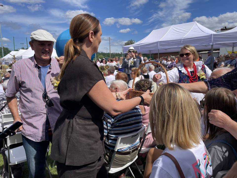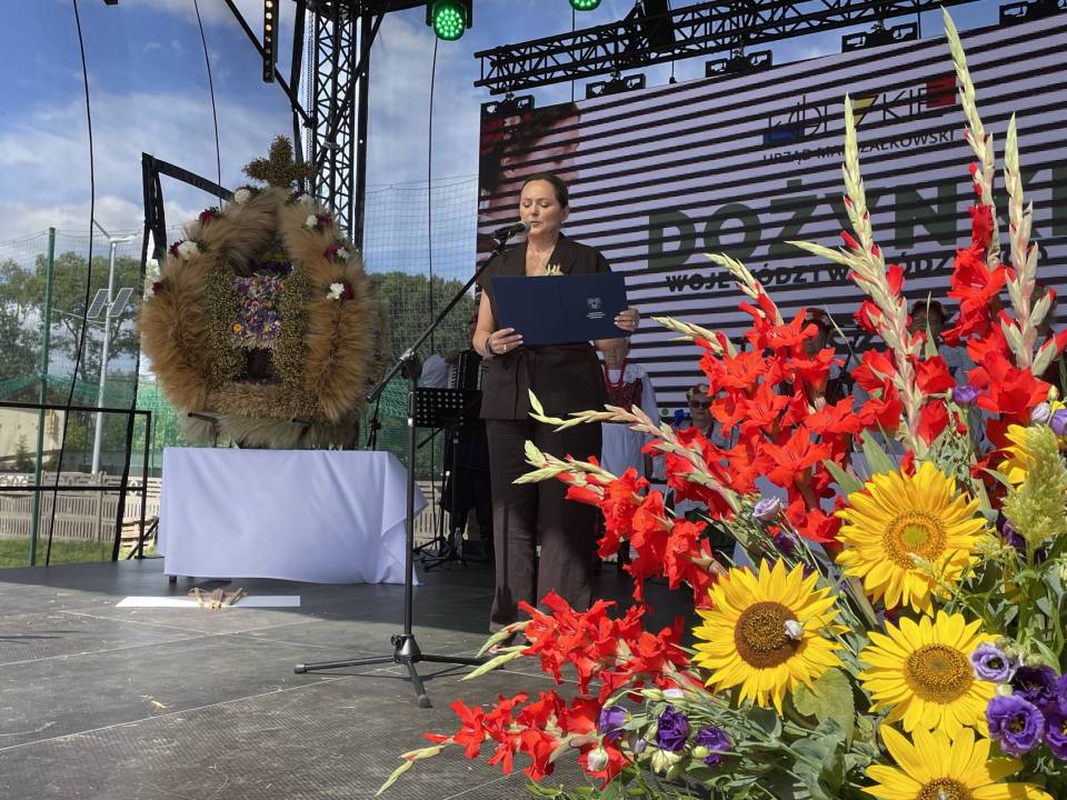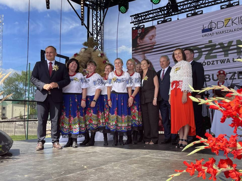 Zapewniła również o wsparciu dla obszarów wiejskich – w tym roku sołectwa z woj. łódzkiego otrzymały rekordowe 40 mln zł m.in. na świetlice i miejsca integracji. Część obrzędową rozpoczął Zespół Śpiewaczy „Sędziejowianki", a następnie starostowie dożynek – Agnieszka Węglewska i Paweł Michalak – przekazali na ręce marszałek bochen chleba upieczony z tegorocznych zbóż.