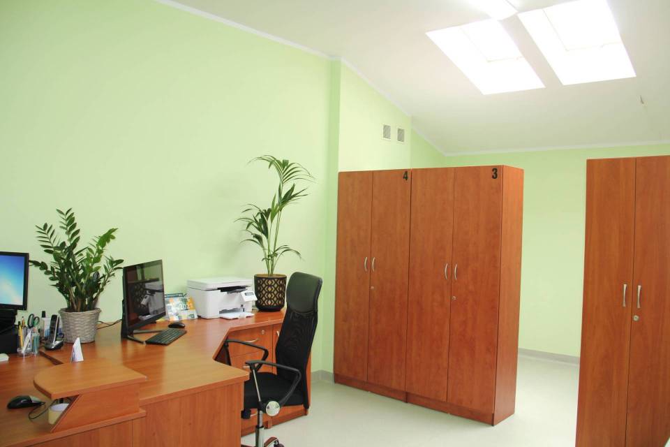 Mała sala, w której nie było okien przeistoczyła się natomiast w pokój księgowości. Zostały zamontowane dwa okna dachowe, przez które wpada światło, w pomieszczeniu powstał także mały kącik kuchenny. Dotychczas pomieszczenie to było ciemne, bez okien. Oba pomieszczenia zostały odświeżone i odmalowane.