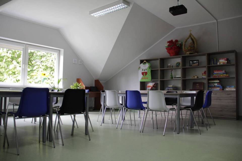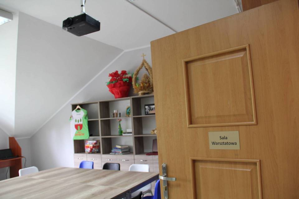 Duże pomieszczenie, w którym dotychczas mieściła się Księgowość GCKB, przeistoczyło się w wygodną Salę Warsztatową, do użytku dla dzieci, młodzieży i dorosłych. Sala jest wyposażona w nowe krzesła i stoły konferencyjne, przeznaczona na 20 miejsc siedzących.