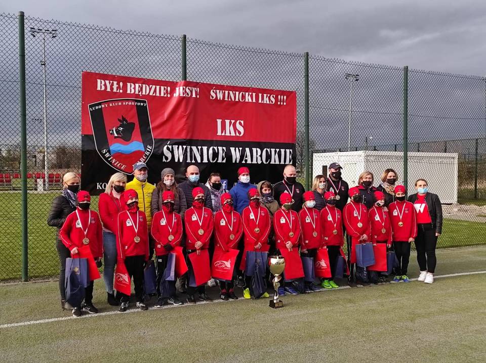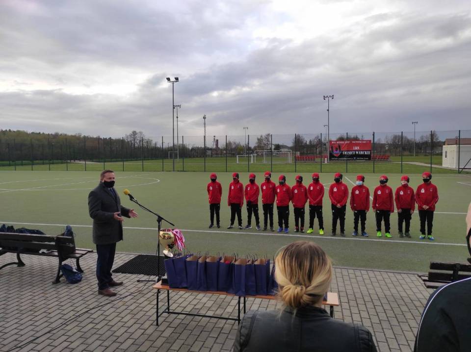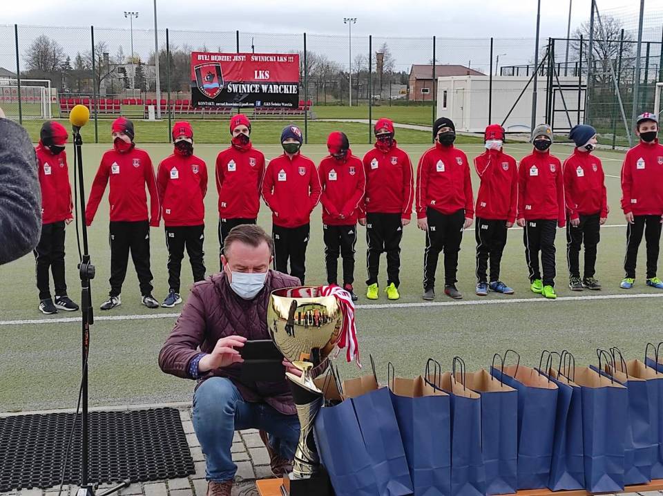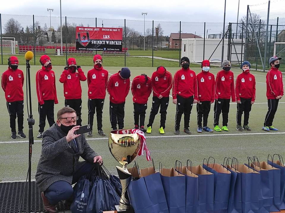Nie tylko pokaźnych rozmiarów puchar i medale otrzymali juniorzy, również kurtki z logo Świnic Warckich, by dumnie reprezentować gminę na innych boiskach ale też pamiątkowe upominki oraz najlepsze życzenia i gratulacje od obecnych gości. W tym miejscu musimy podkreślić, że jest to pierwszy a zarazem największy sukces drużyny młodzieżowej w kilkudziesięcioletniej historii klubu.