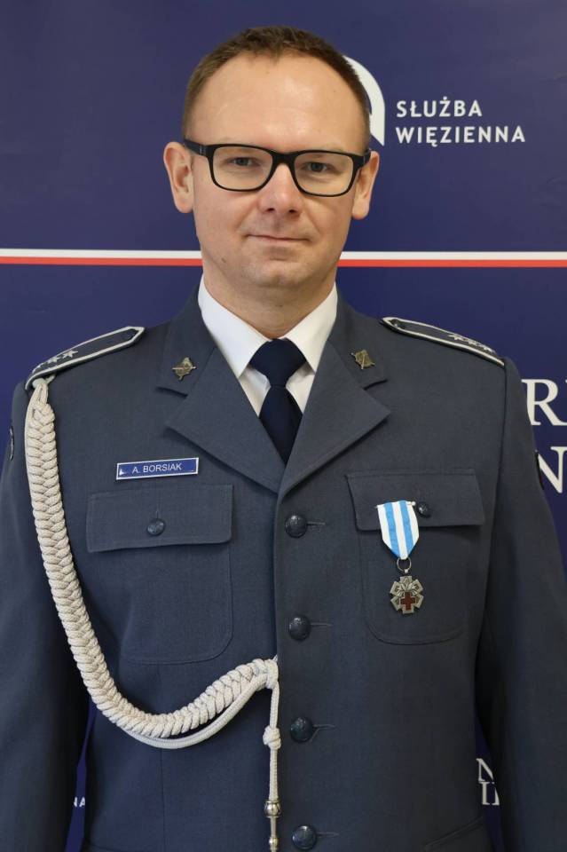 Podczas uroczystości wręczono również wyróżnienie chor. sztab. Adrianowi Borsiakowi, który został uhonorowany odznaką „Zasłużony dla Zdrowia Narodu", przyznawaną przez Ministra Zdrowia RP. To prestiżowe wyróżnienie jest przyznawane osobom, które oddały co najmniej 20 litrów krwi, wykazując niezwykłą postawę społeczną i gotowość do ratowania ludzkiego życia. Wieloletnie zaangażowanie funkcjonariusza w honorowe krwiodawstwo jest wyrazem prawdziwego poświęcenia dla innych i przykładem wartości, które stanowią fundament Służby Więziennej – odpowiedzialności, służby społeczeństwu i troski o drugiego człowieka.