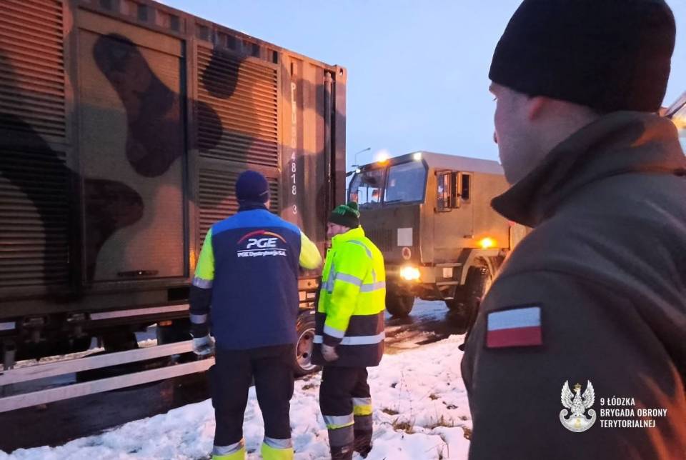 Żołnierze 9ŁBOT dotarli do Poddębic z własnym, specjalistycznym wyposażeniem - kontenerową elektrownią polową o mocy 400 kV, przystosowaną do zasilania infrastruktury cywilnej w warunkach ekstremalnych i w sytuacjach nagłej potrzeby. Sprzęt tego typu zwykle wykorzystywany jest podczas klęsk żywiołowych, awarii sieci energetycznych lub przy zabezpieczaniu infrastruktury krytycznej.