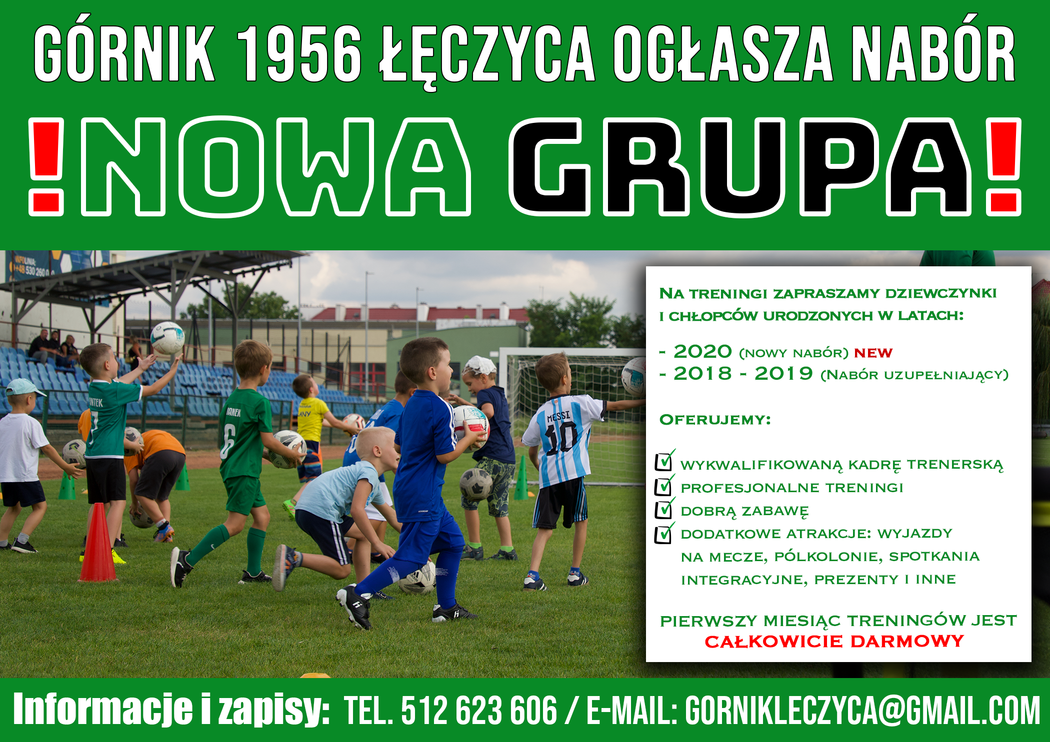 MKS "Górnik 1956" Łęczyca ogłosił nabór do nowej grupy szkoleniowej. Na zajęcia można zapisywać dzieci urodzone w 2020 roku. Trwa także nabór uzupełniający dla dzieci z roczników 2018/19.