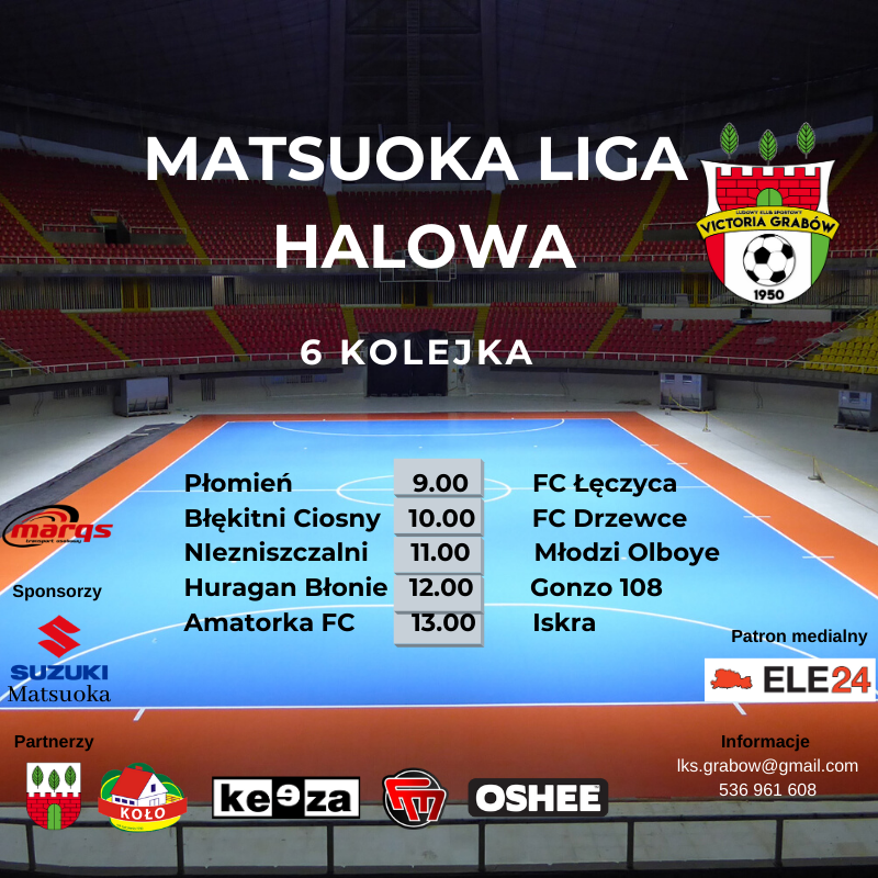 5 i 6 stycznia od godziny 9.00, czeka nas odpowiednio 5. i 6. kolejka Grabowskiej Ligi Halowej. Najwięcej emocji zapowiada się w pierwszym spotkaniu 5. kolejki, gdzie Młodzi Oldboye podejmą FC Łęczyca. Kto będzie miał komplet punktów po 5 kolejce?