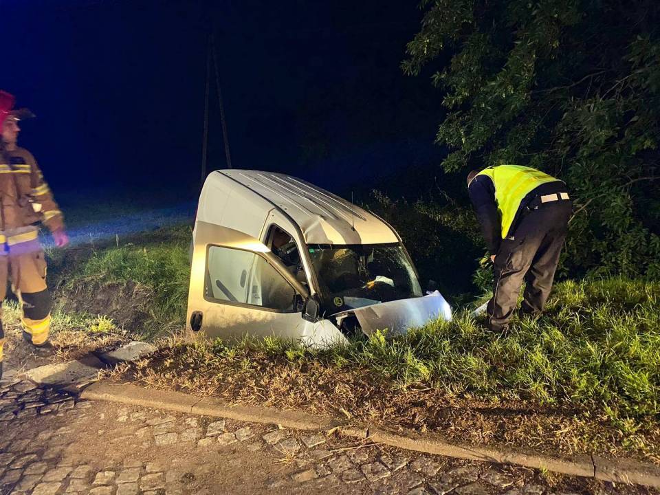 W niedzielę, 22 sierpnia około godziny 1.40 w miejscowości Ogrodzona, 44-letnia kobieta, która kierowała Fiatem Doblo zjechała na na przeciwną stronę drogi, gdzie wjechała do rowu i uderzyła w betonowy przepust. Poza kierującą obrażeń ciała doznał 44-letni pasażer. Wstępne ustalenia wskazują, że przyczyną tego wypadku było zaśniecie kierującej.