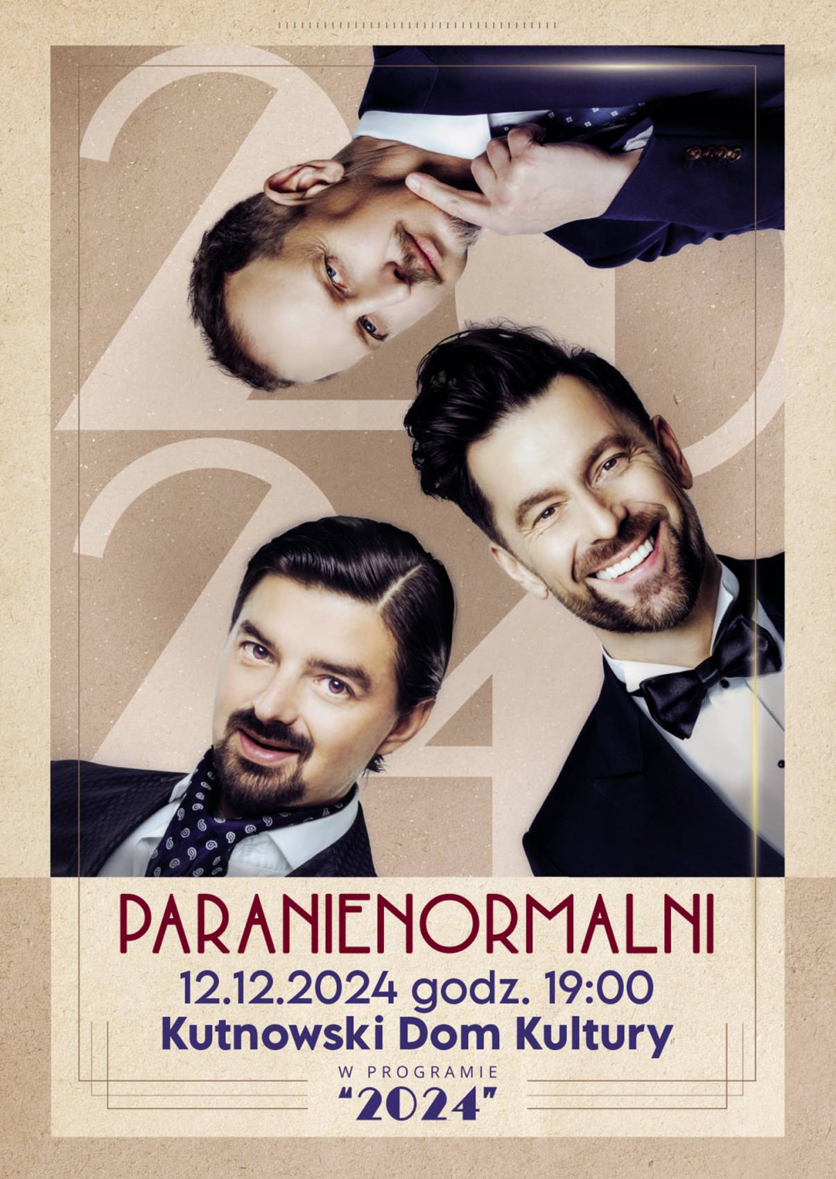 Najnowszy program kabaretu Paranienormalni jest stworzony z myślą o 2024 roku. Czas biegnie bez litości, świat się zmienia w galopującym tempie i nikt nie jest w stanie go dogonić. Humor to specyficzna ludzka moc która pomaga spoglądać pogodnie na przyszłość, oswoić teraźniejszość i cieszyć się z przeszłości. Improwizujemy z teraźniejszością, tęsknimy za przeszłością. Chcemy się określić wobec przyszłości. Z tych wszystkich emocji zbudowany jest najnowszy program kabaretu Paranienormalni pt 2024. Powraca dobrze znany widzom i mocno zdziwiony rzeczywistością doctor Prozac, a wraz z nim wiele surrealistycznych wątków z życia wziętych. Widzowie zobaczą polskie kino od kuchni, amerykańskie od frontu i przekonają się jak się robi show w telewizji. Bez polityki, seksu i religii. Paranienormalni zapraszają do swojego świata, w którym znajdziesz bezpieczne miejsce dla siebie. Nowy program 2024 to prawie 2 godzinny spektakl w którym uczestniczysz od pierwszych minut. To kabaretowa mieszanka w najlepszym paranienormalnym stylu.