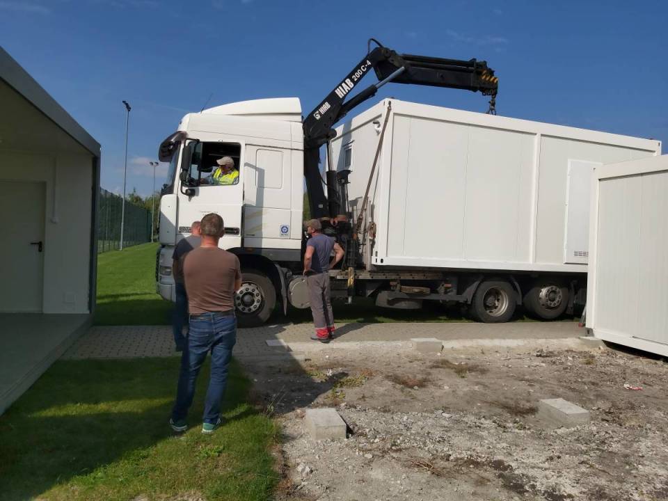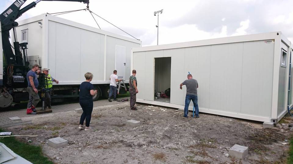 - Na przygotowanym podłożu z doprowadzonymi mediami w postaci instalacji elektrycznej, wodnej i kanalizacyjnej nastąpiła instalacja brakujących dwóch kontenerów sportowo-sanitarnych przez firmę ANGA Sp. z o.o. z Gdańska - informują przedstawiciele GOK-u w Świnicach Warckich.