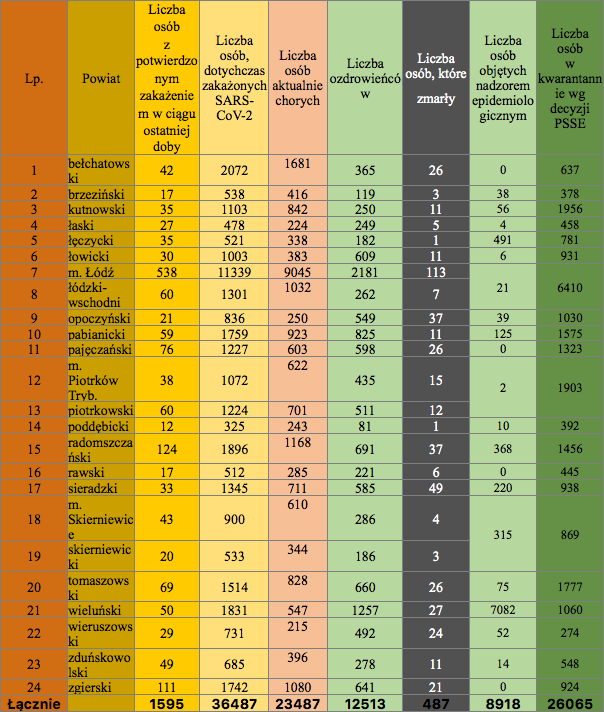 Są to dane Łódzkiego Urzędu Wojewódzkiego na dzień 6 listopada 2020 oku.