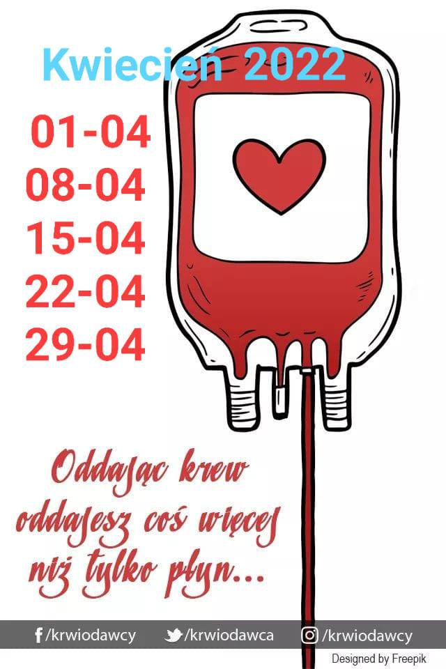 Klub HDK PCK "Strażak" przy OSP w Łęczycy opublikował kwietniowy harmonogram poboru krwi w krwiobusie przy Urzędzie Miejskim w Łęczycy .