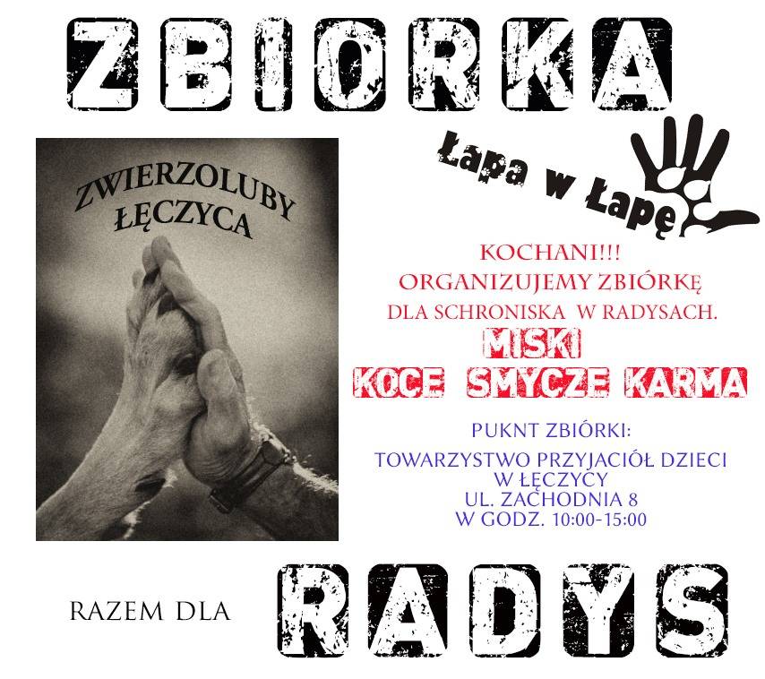 Grupa "Zwierzoluby Łęczyca" organizuje zbiórkę dla Schroniska w Radysach pod hasłem "Łapa w Łapę".