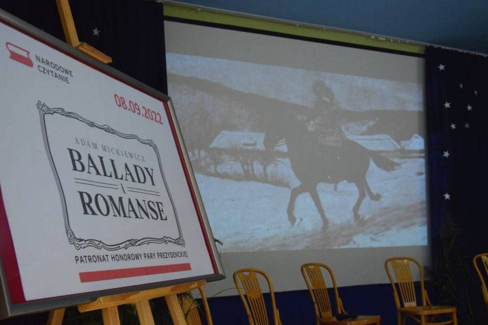 Narodowe Czytanie jest polską akcją społeczną, zapoczątkowaną w 2012 roku, propagującą znajomość literatury narodowej, w której obszerne fragmenty dzieł odczytywane są publicznie. W tym roku czytane były „Ballady i romanse" Adama Mickiewicza z okazji dwusetnej rocznicy ich opublikowania. Patronat honorowy nad akcją objęła Para Prezydencka.