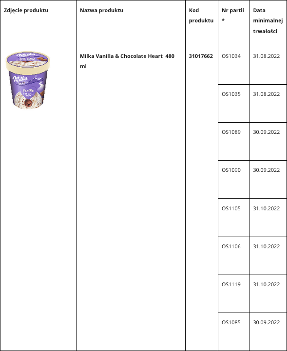 Spółka Froneri Polska Sp. z o.o., ul. Wojska Polskiego 3, 39-300 Mielec rozpoczęła proces wycofywania wyżej wskazanych partii lodów. Wszyscy odbiorcy zostali poinformowani o zaistniałej sytuacji i konieczności wycofania wskazanych numerów partii produktów.