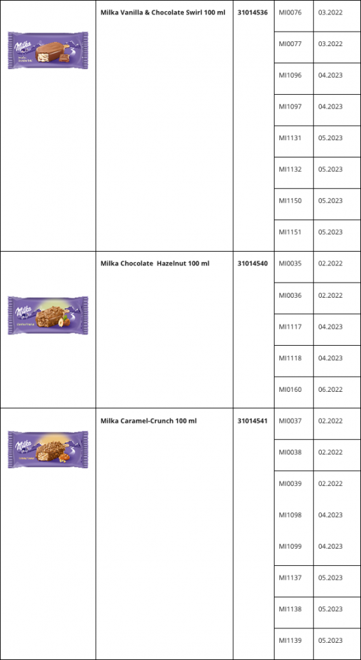 W związku z powyższym dystrybutor FRONERI POLSKA Sp. z o.o. zdecydował o konieczności wycofania nw. produktów wyprodukowanych i wprowadzonych do obrotu zanim firma uzyskała informację o zanieczyszczeniu surowca: