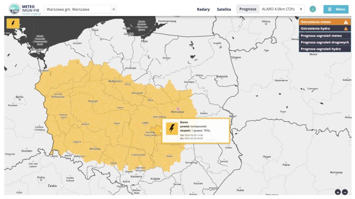 Ostrzeżenie w łódzkiem obowiązuje w sobotę, 25 marca od godziny 14.00 do 20.00.