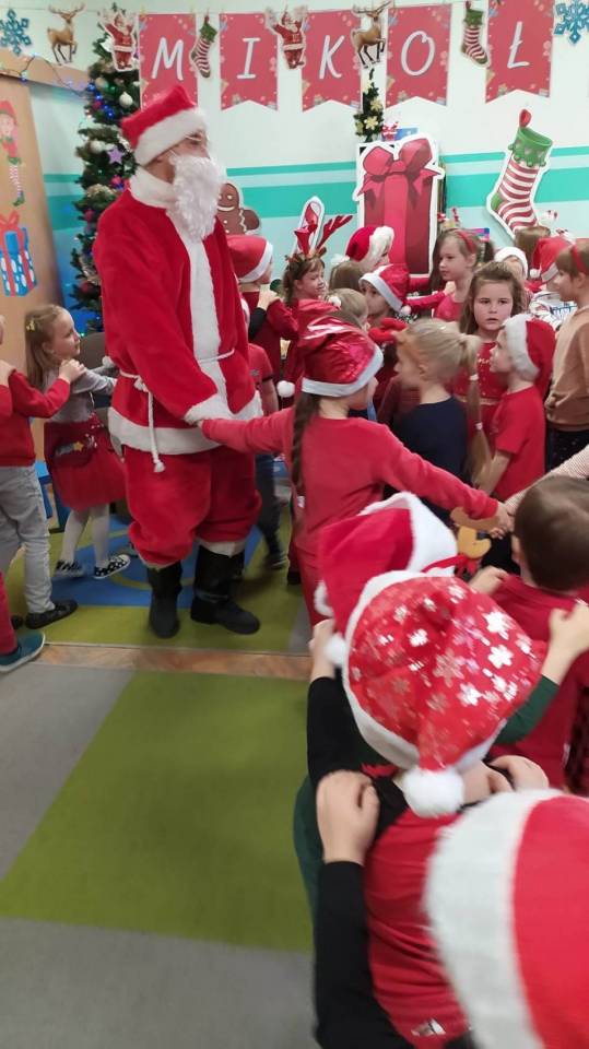 - 6 grudnia nasze przedszkole odwiedził bardzo miły i długo oczekiwany gość. Miał czerwony strój, długą, białą brodę, dźwigał na plecach bardzo ciężki worek, a w nim prezenty. To nie mógł być nikt inny, tylko Mikołaj - mówią przedstawiciele placówki. - Z okazji imienin przedszkolaki złożyły Mikołajowi życzenia, odśpiewały „tysiąc lat" i wręczyły mu upominek. Na twarzach dzieci malowała się wielka radość i przejęcie. Do szerszej fotorelacji zapraszamy na naszą stronę internetową - https://p2leczyca.edu.pl.