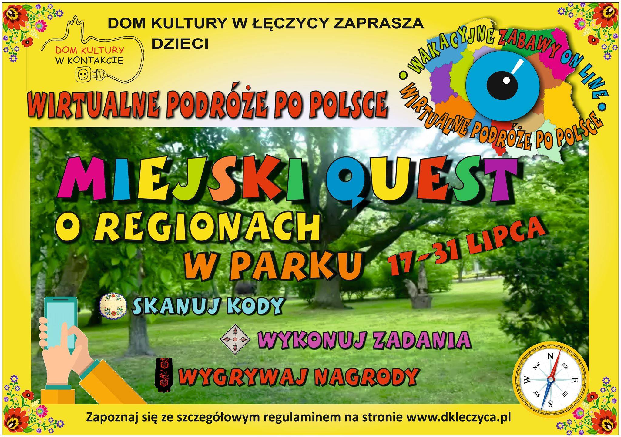 Quest rozgrywany jest w Parku Miejskim, zadania związane są z tym miejscem, ale także z tematem Wirtualnych Podróży po Polsce, czyli 4 regionami: Podhalem, Kaszubami, Podlasiem i Śląskiem. Nie trzeba się spieszyć – quest można zaliczać przez cały tydzień od 27 lipca, od godz. 12.00 do 31 lipca do godz.12.00.