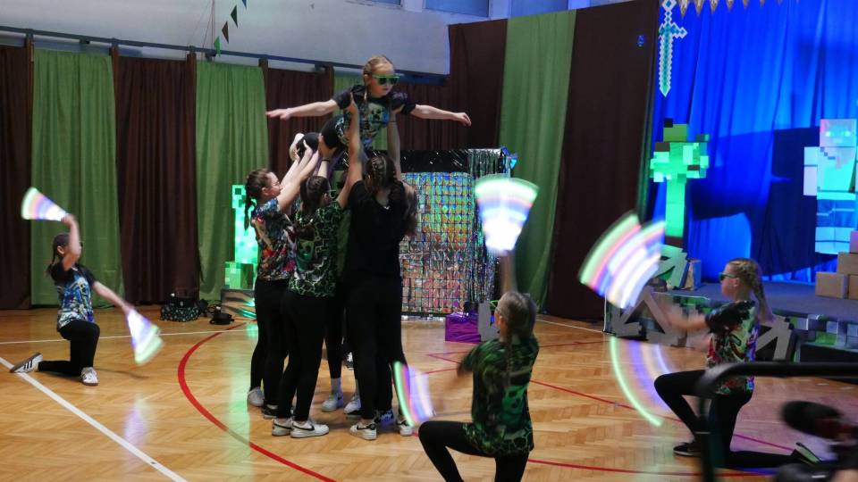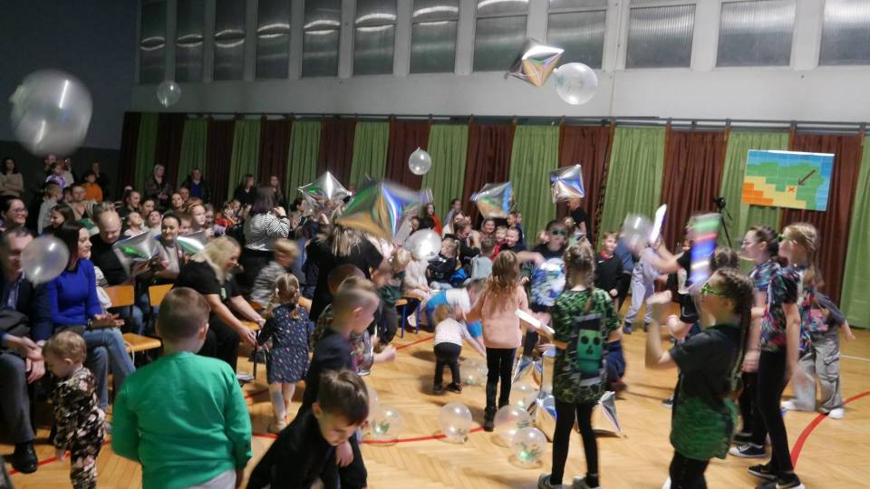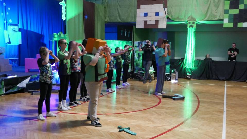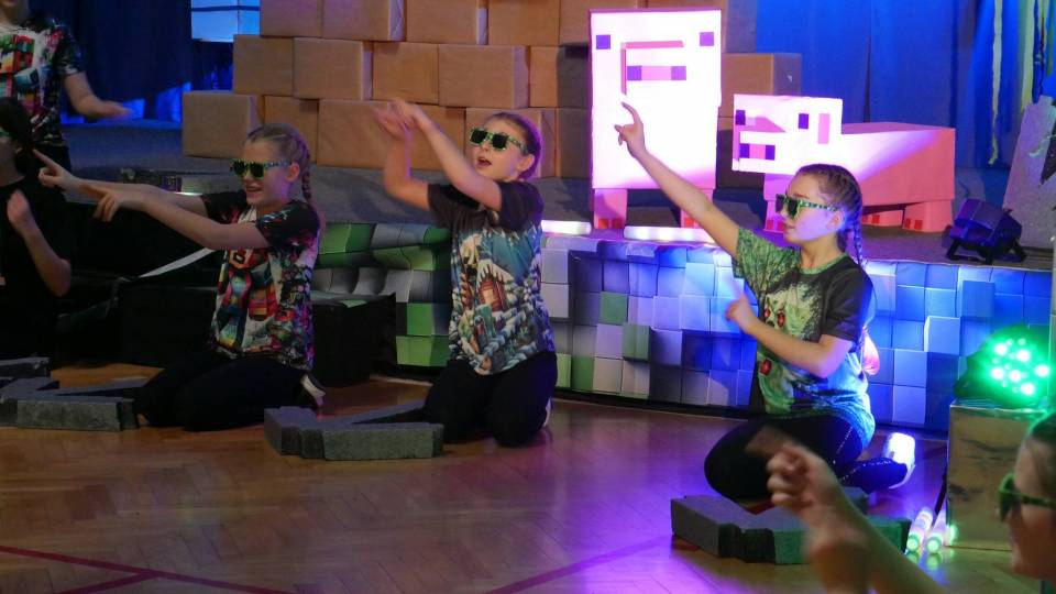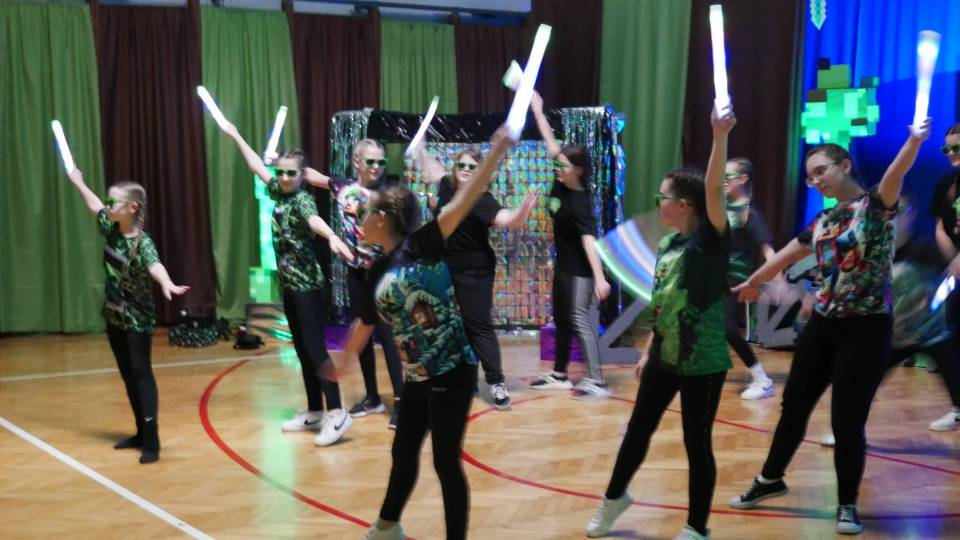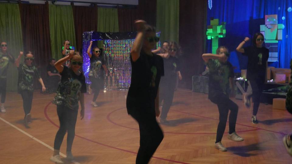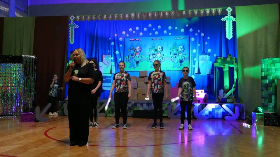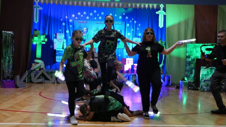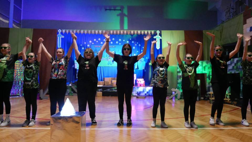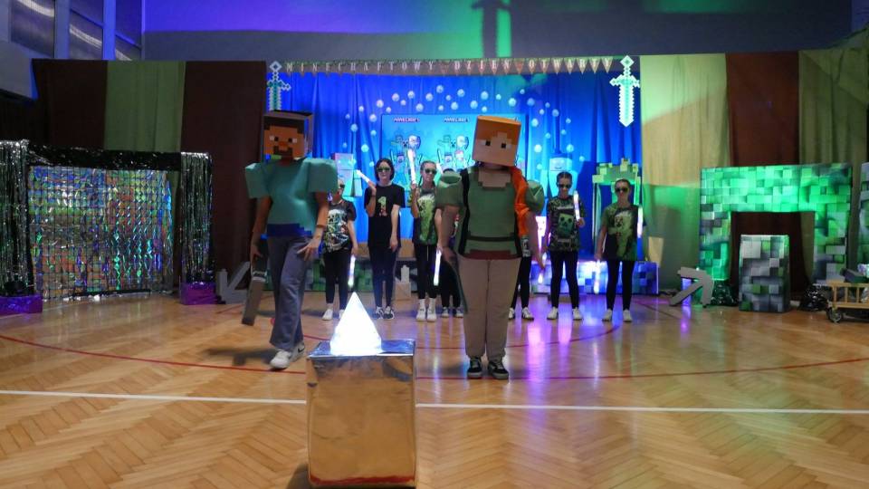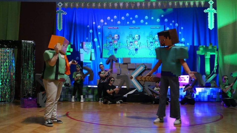 Pierwszym punktem programu było minecraftowe przedstawienie w wykonaniu uczniów, które przeniosło widzów do pikselowego świata pełnego przygód i inspiracji. Barwne kostiumy, kreatywna scenografia i zaangażowanie młodych aktorów sprawiły, że publiczność z zapartym tchem śledziła losy bohaterów i chętnie włączała się do wspólnej zabawy.