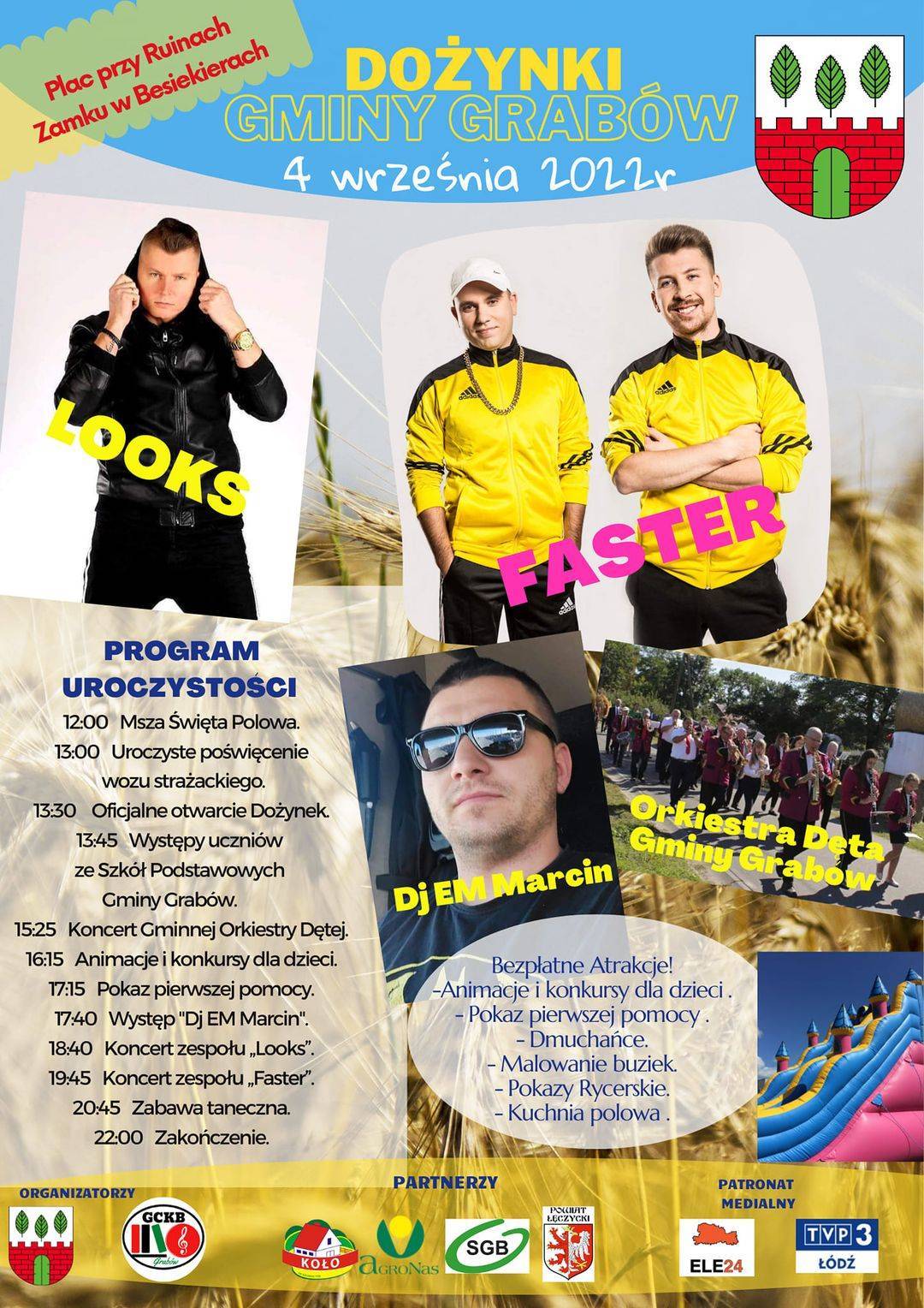 - Uroczystość rozpocznie się tradycyjną Mszą Świętą Polową o godz. 12.00. Dzień będzie pełen atrakcji. Na scenie wystąpią: Faster, LOOKS, Dj EM. Oczywiście to nie wszystko! Dla dzieci będą dostępne bezpłatnie m. in. dmuchańce, malowanie buziek, animacje, warsztaty tworzenia mydełek. Dla wszystkich uczestników zapewniamy kuchnię polową z tradycyjną zupą cebulową. Na stoiskach Kół Gospodyń Wiejskich dostępne będą różnorodne potrawy. Na scenie zagoszczą dzieci i młodzież ze Szkół Podstawowych Gminy Grabów, a także Gminna Orkiestra Dęta. Dostępne będą foodtracki, stoiska z zabawkami, watą cukrową i innymi pysznościami. Serdecznie zapraszamy! - zachęcają organizatorzy wydarzenia.