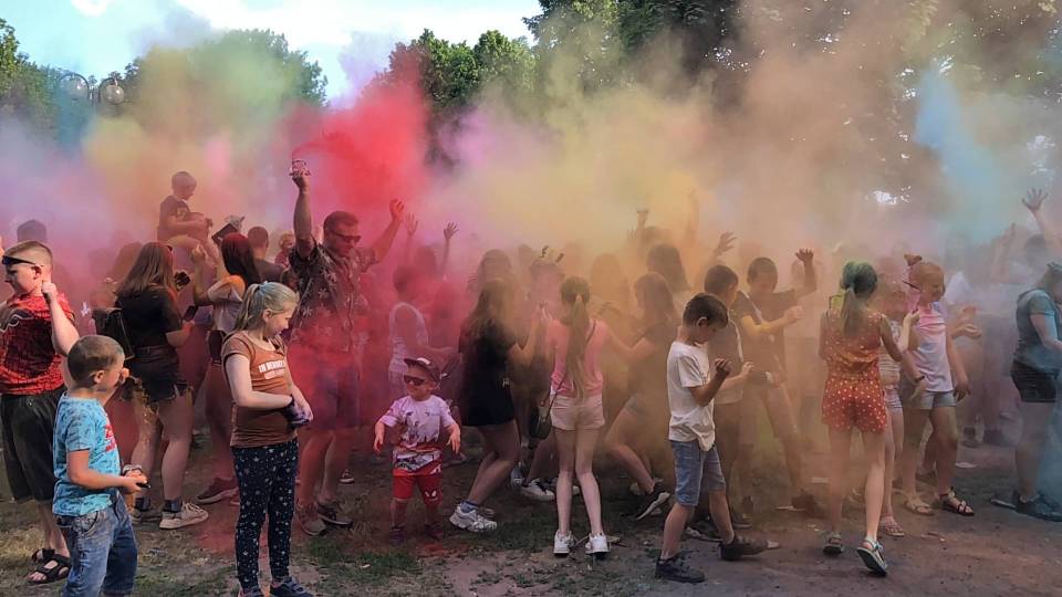 Po raz drugi w naszym mieście odbyły się bowiem Dzień Baniek Mydlanych oraz Święto Kolorów. W Parku Miejskim pojawiło się wiele osób spragnionych dobrej zabawy. Od godziny 15:00 królowały bańki mydlane i konkursy dla najmłodszych, natomiast o godzinie 17:00 odbył się pierwszy, z kilku wyrzutów w ramach Święta Kolorów.