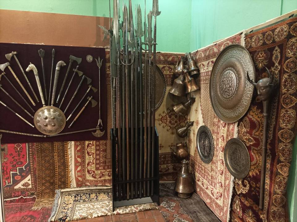 Najliczniej reprezentowaną grupą broni są szable m.in.: tureckie, perskie, pruskie, polsko-węgierskie, francuskie czy słynne polskie szable husarskie. Ekspozycję wzbogacają m.in.: sztylety i miecze indyjskie, jatagany, pale, partyzany i halabardy oraz topory bojowe i ceremonialne. Broń miotającą stanowią głównie łuki retrorefleksyjne z XVII i XVIII w., natomiast broń palną pistolety oraz strzelby. Oprócz uzbrojenia zaczepnego, na wystawie można obejrzeć również elementy uzbrojenia obronnego, a w tym bogato zdobione: kolczugi, napierśniki, pancerze, zbroje, ryngrafy, tarcze, czy hełmy.
