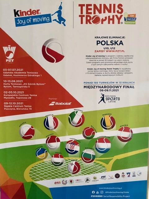 Kinder Joy of moving Tennis Trophy to wyjątkowy turniej tenisa ziemnego, który łączy tysiące z 13 różnych krajów w duchu dobrej zabawy i przyjaźni będącej najważniejszym trofeum! Turnieje rozgrywane są w systemie TPO PZT, tj. mogą w nich wystąpić wszyscy posiadający licencję PZT.