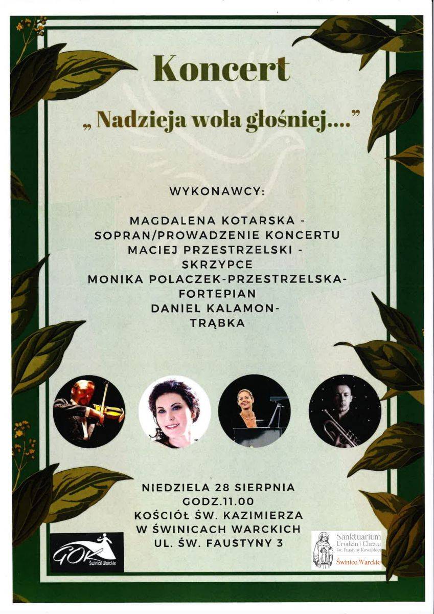 W niedzielę (28 sierpnia) w Kościele Św. Kazimierza w Świnicach Warckich odbędzie się koncert „nadzieja woła głośniej…".
