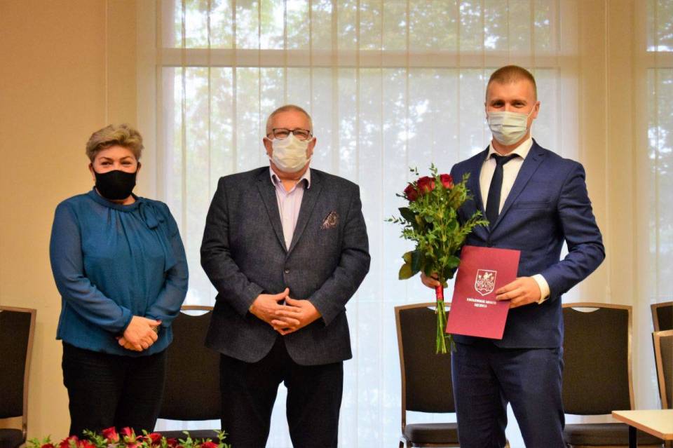 Burmistrz Paweł Kulesza miał także przyjemność wręczyć nauczycielowi Szkoły Podstawowej nr 1 panu Łukaszowi Cybulskiemu nagrodę Łódzkiego Kuratora Oświaty.