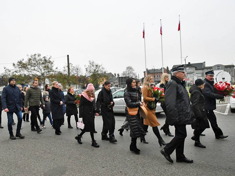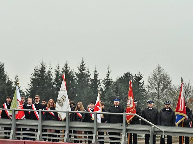 Po nabożeństwie uczestnicy Święta Narodowego przeszli pod pomnik „Krzyż" przy ulicy Łowickiej, gdzie delegacje złożyły kwiaty, zapaliły znicze, a orkiestra OSP Piątek zagrała hymn.