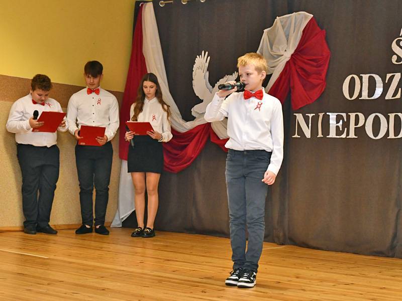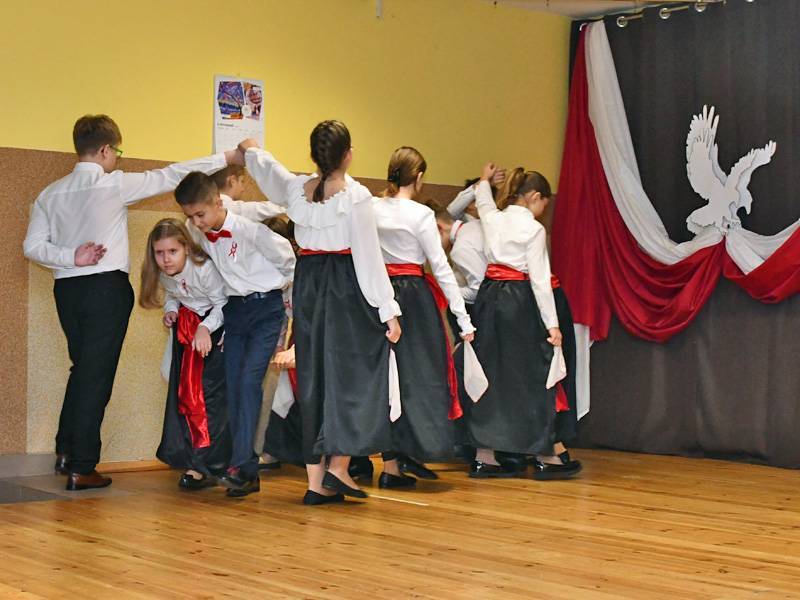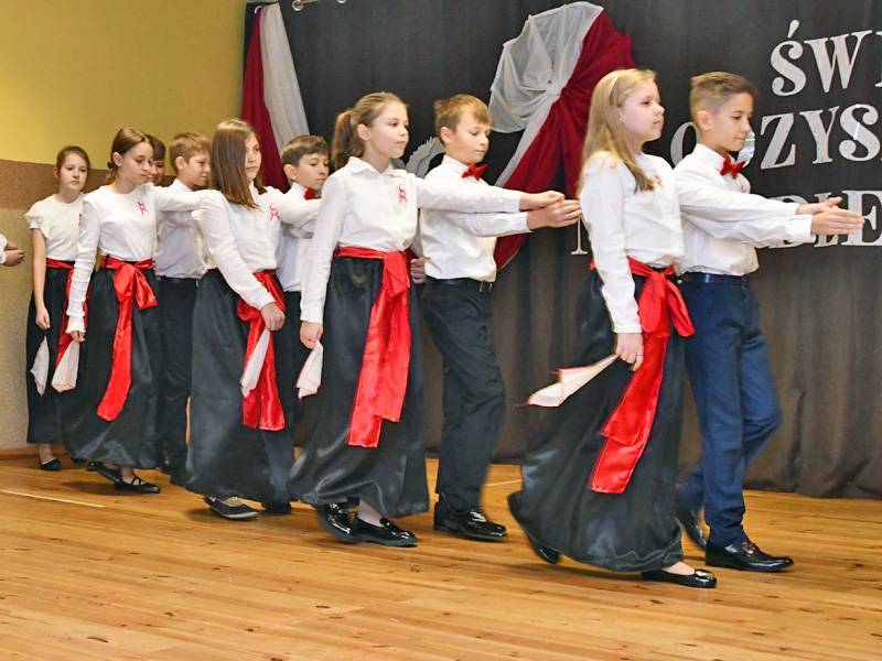 Ostatnia część uroczystości miała miejsce w Gminnym Ośrodku Kultury w Piątku. Sala widowiskowa wypełniła się mieszkańcami, którzy przyszli obejrzeć widowisko słowno-muzyczne przygotowane i wystawione przez uczniów ze Szkoły Podstawowej im. Orła Białego w Czernikowie. Młodzi aktorzy nagrodzeni zostali przez publiczność owacją na stojąco oraz słodyczami.