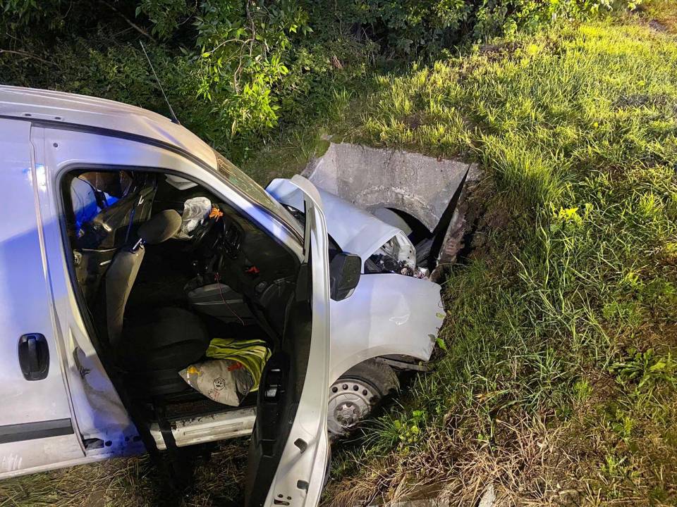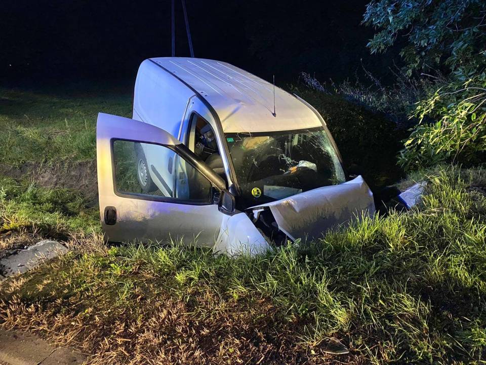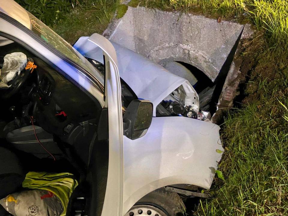 Około godziny 1:40 do stanowiska kierowania Komendy Powiatowej Państwowej Straży Pożarnej w Łęczycy wpłynęło zgłoszenie o wypadku w miejscowości Ogrodzona (gm. Daszyna). Jak udało nam się dowiedzieć na miejscu zdarzenia, auto wypadło z drogi i rozbiło się w rowie o betonowy przepust.