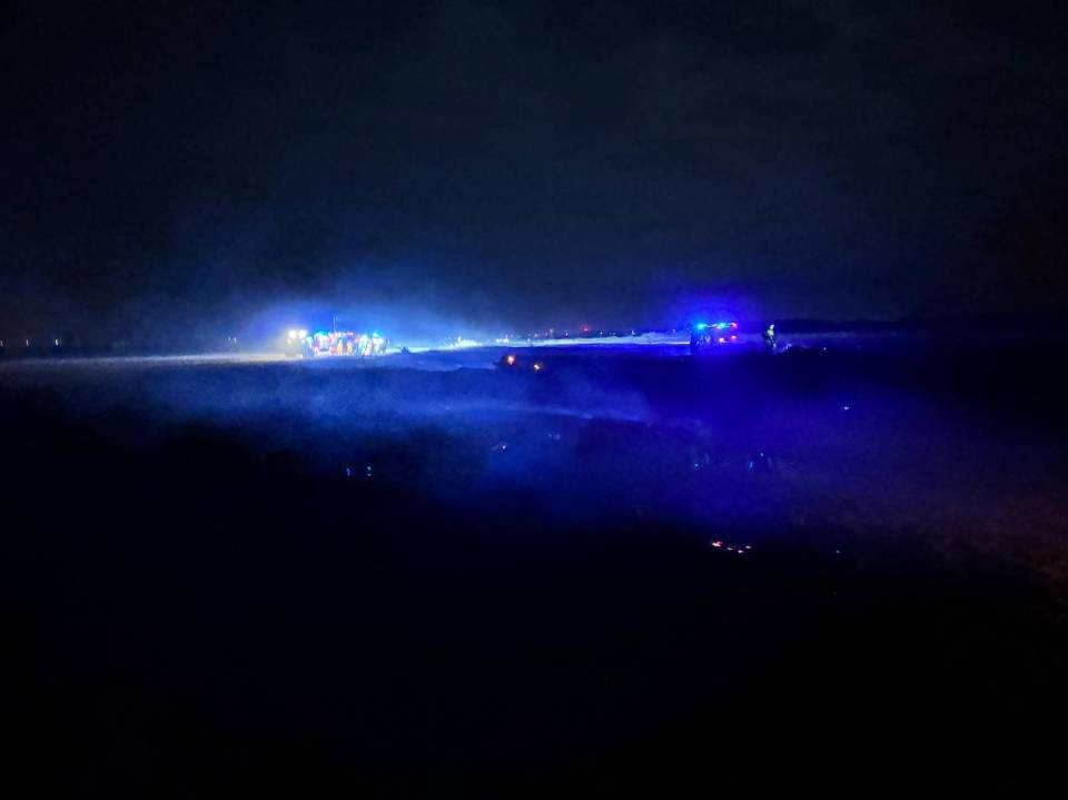 Około godziny 20:30 w sobotę w miejscowości Błonie (powiat łęczycki) wybuchł pożar, który bardzo szybko objął blisko 10 hektarów terenów porośniętych suchą trawą i trzciną. Akcja gaśnicza była niezwykle wymagająca ze względu na trudne warunki – grząski i trudno dostępny teren utrudniał dojazd do ogniska pożaru. Na miejscu interweniowały dwie jednostki z Państwowej Straży Pożarnej w Łęczycy oraz zastępy Ochotniczej Straży Pożarnej w tym 2 jednostki z Leźnicy Małej, oraz po jednej jednostce z Topoli Królewskiej, Góry Świętej Małgorzaty, Sławęcina, Daszyny i Siedlca. Mimo ograniczonego dostępu i konieczności działania w ciężkim terenie, strażacy szybko zorganizowali trzy stanowiska wodne przy kanale, z którego czerpano wodę do gaszenia, i skutecznie wykorzystali podręczny sprzęt oraz tłumice. Dzięki ich zdecydowanej i sprawnej akcji ogień został opanowany, a dalsze rozprzestrzenianie się żywiołu skutecznie powstrzymane. Teren pogorzeliska będzie jeszcze dokładnie przelewany, by wyeliminować ryzyko ponownego zapłonu. Na miejscu pracowali również funkcjonariusze policji, którzy zabezpieczyli obszar i prowadzą czynności mające ustalić dokładną przyczynę pożaru – wiele wskazuje na to, że mogło dojść do celowego podpalenia. Strażacy kierują szczególne podziękowania do policji za profesjonalne wsparcie i wzorową współpracę podczas tej trudnej i wymagającej akcji.