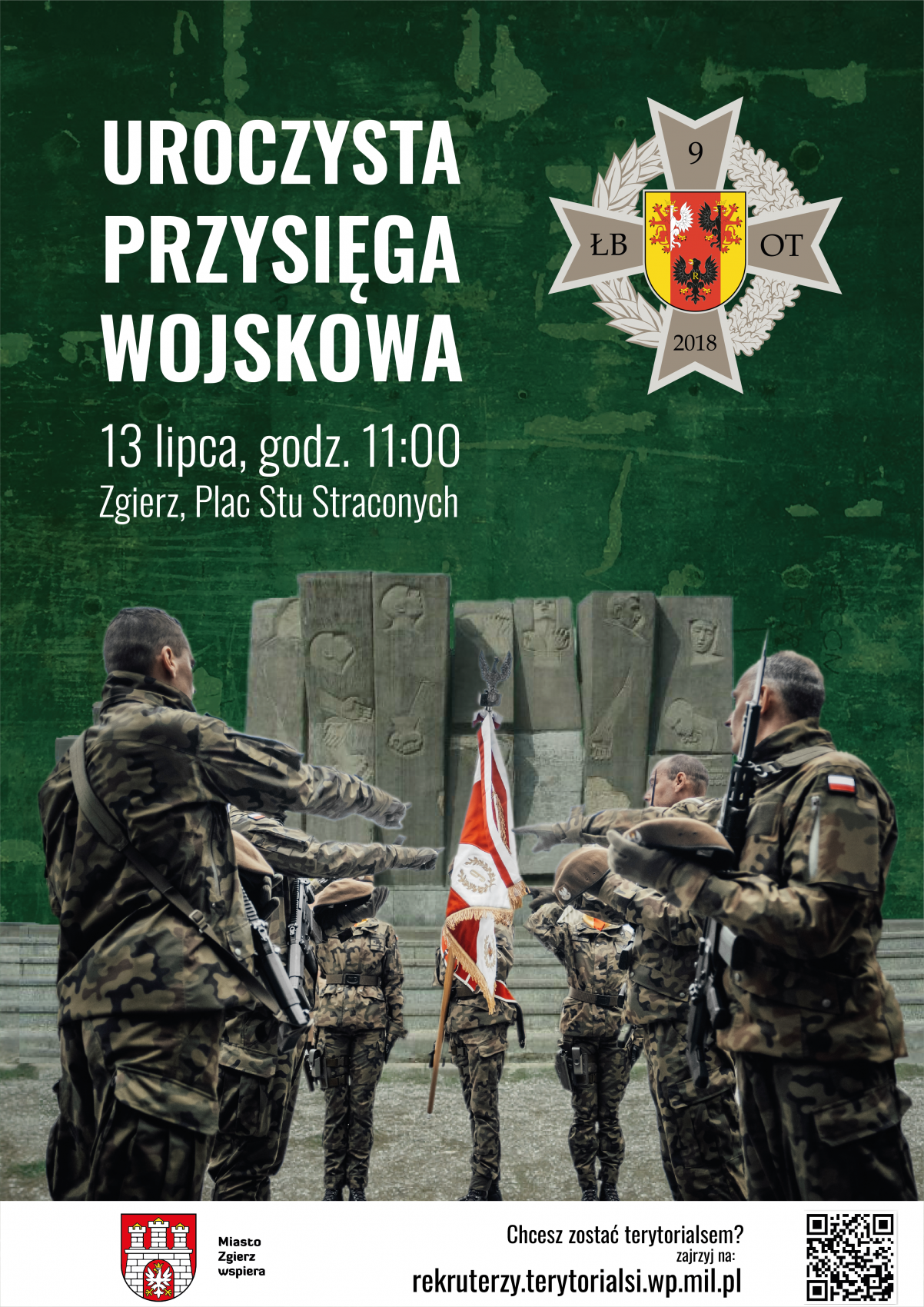 13 lipca 2024 roku odbędzie się Uroczysta Przysięga Wojskowa na Placu Stu Straconych w Zgierzu o godz. 11:00 dla nowych żołnierzy 9 Łódzkiej Brygady Obrony Terytorialnej.