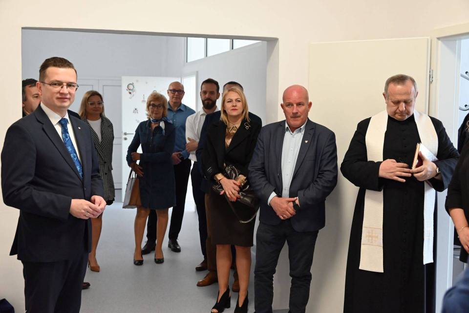 Nowoczesne warunki dla dzieci i personeluUczestnicy wydarzenia mogli zwiedzić nowo wybudowany obiekt. Po placówce oprowadzała dyrektor Katarzyna Szmyd-Kuropatwa. Żłobek składa się z czterech sal z łazienkami, szatni dla dzieci, łazienki dla personelu, pokoju pielęgniarki, gabinetu dyrektora, pomieszczenia socjalnego dla pracowników oraz kuchni z zapleczem.