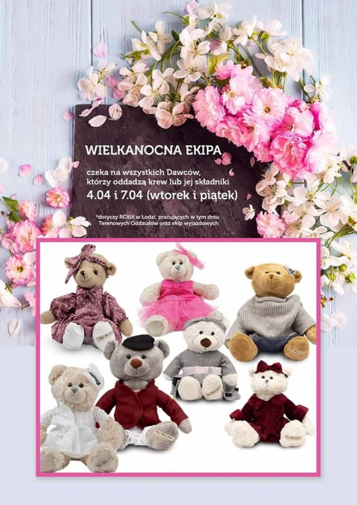 W najbliższy piątek (7 kwietnia) osoby, które oddadzą krew lub jej składniki otrzymają wyjątkowy, wielkanocny upominek – pluszowego misia.
