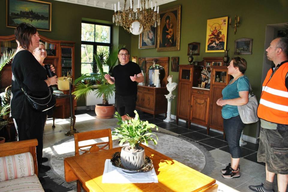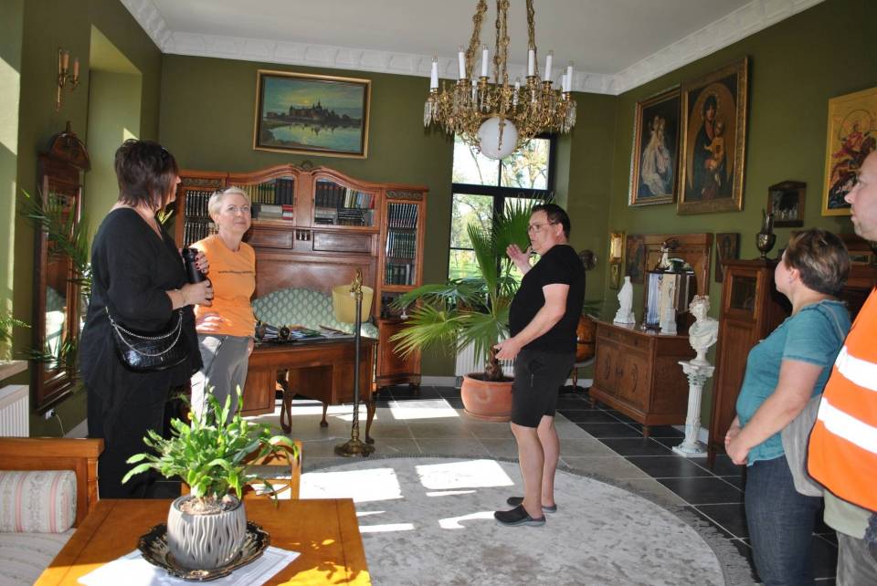 Ten zbudowany w drugiej połowie XIX dwór do II wojny światowej należał do rodziny Jezierskich. Po wojnie należał do gminy i pełnił różne funkcje. W ostatnich latach został odnowiony przez obecnego właściciela Pana Michała Myczkowskiego. Uczestnicy mogli podziwiać efekty tych wysiłków: pięknie i stylowo urządzone wnętrza oraz rozległy park.
