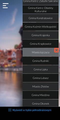 W celu pobrania mapy Łęczycy należy, po uruchomieniu aplikacji, kliknąć ikonkę w prawym górnym rogu i z listy miast wybrać Łęczycę. Gdy aplikacja poinformuje nas o pobraniu mapy, będziemy gotowi na historyczną podróż.