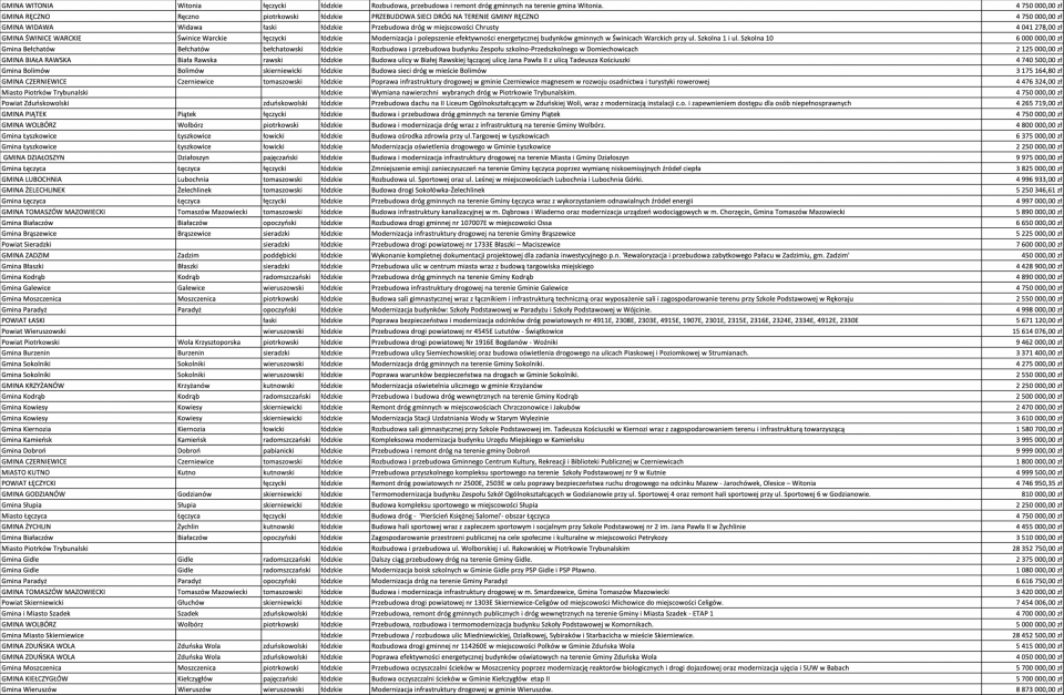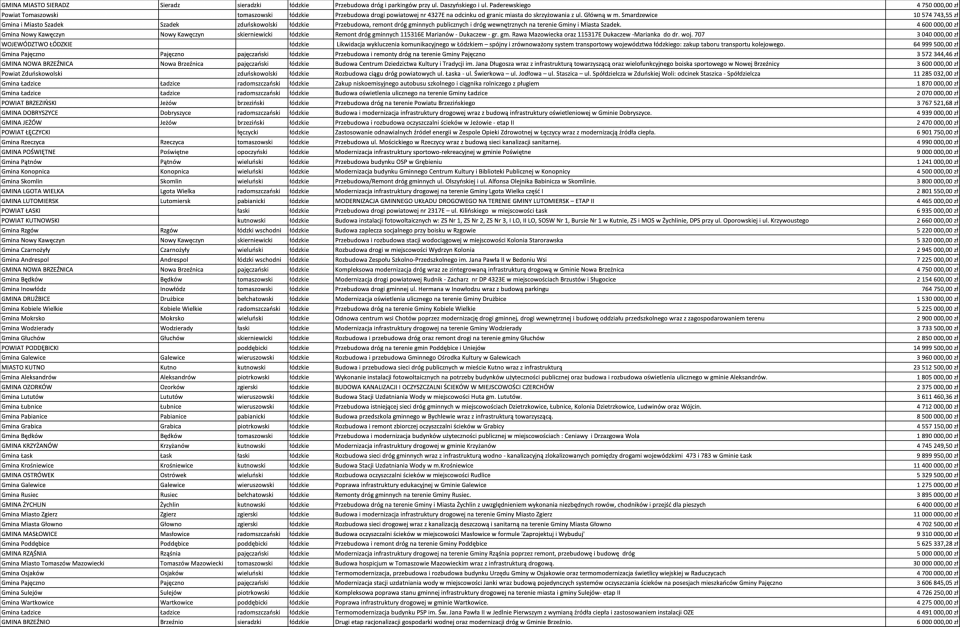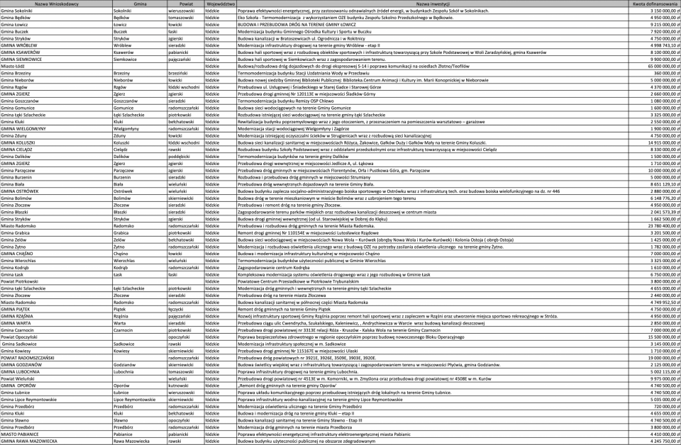 Premier Mateusz Morawiecki ogłosił wyniki II edycji Rządowego Programu Inwestycji Strategicznych. Wszystkie samorządy, które złożyły chociaż jeden wniosek, otrzymały dotacje na budowę i modernizację m.in. dróg, szkół czy inwestycje wodno-kanalizacyjne. W tej edycji bezzwrotne dofinansowanie otrzymało blisko 5 tys. wniosków. Wśród nich są także te z gmin województwa łódzkiego.