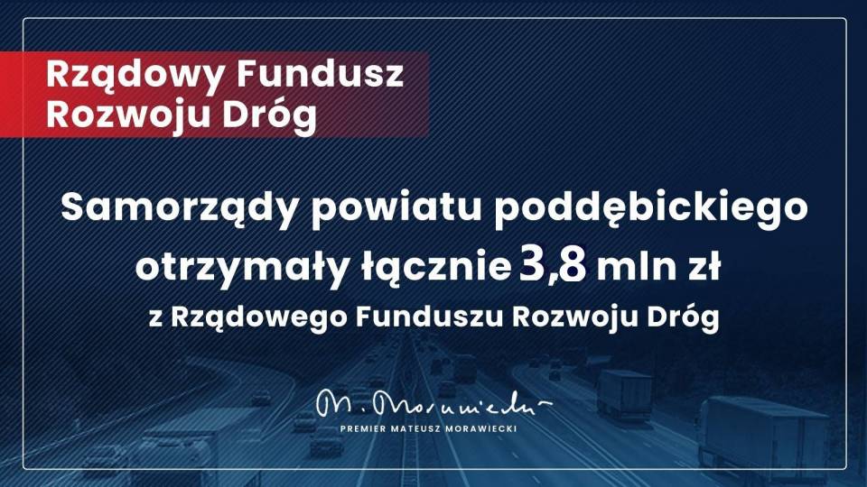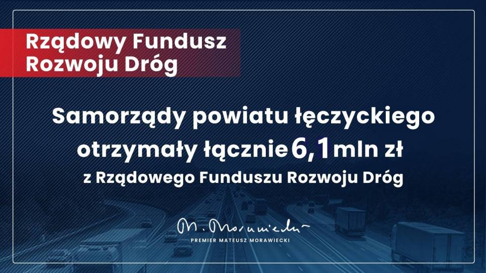 Kolejne bardzo duże pieniądze trafiły do powiatów: kutnowskiego, łęczyckiego i poddębickiego. W ramach Rządowego Funduszu Rozwoju Dróg, samorządy otrzymały na inwestycje drogowe łącznie ponad 18 milionów złotych.