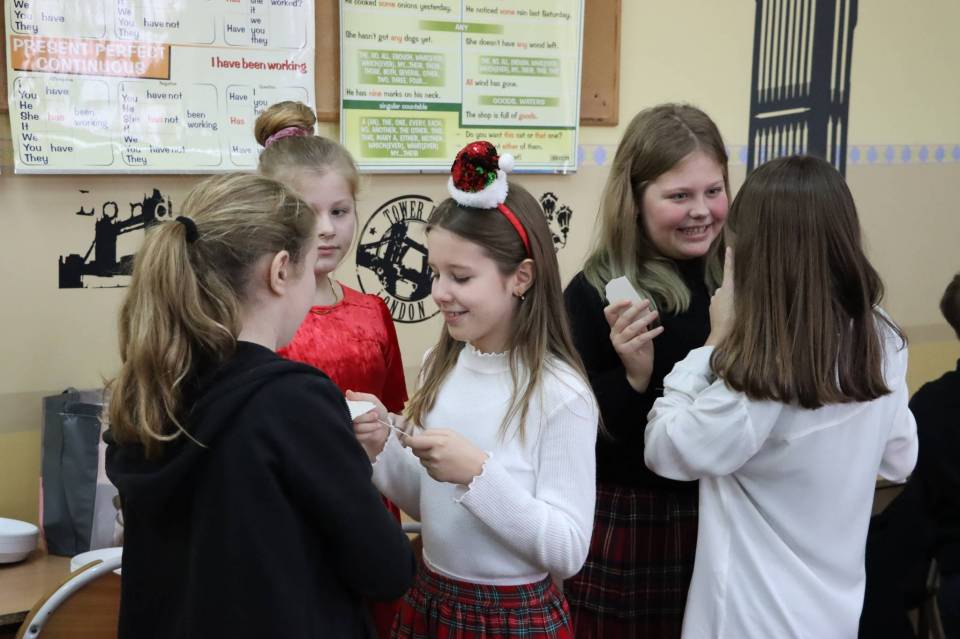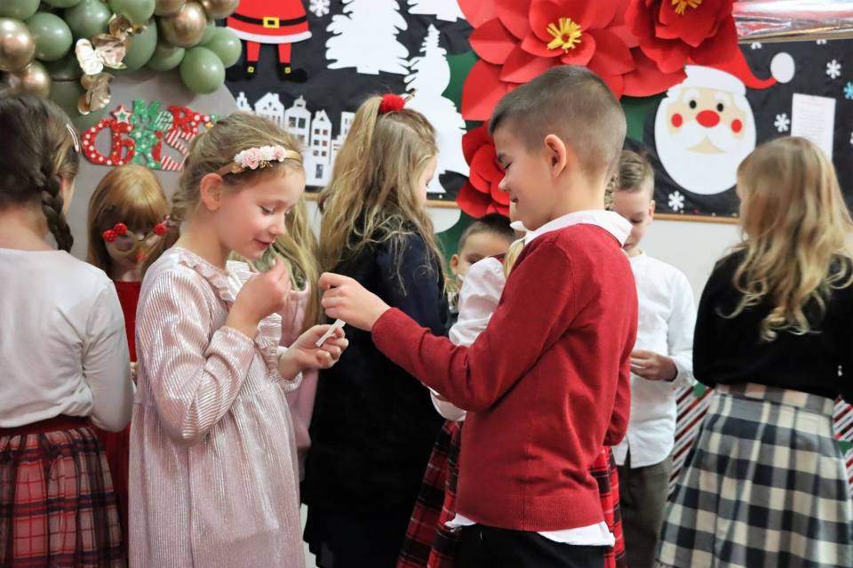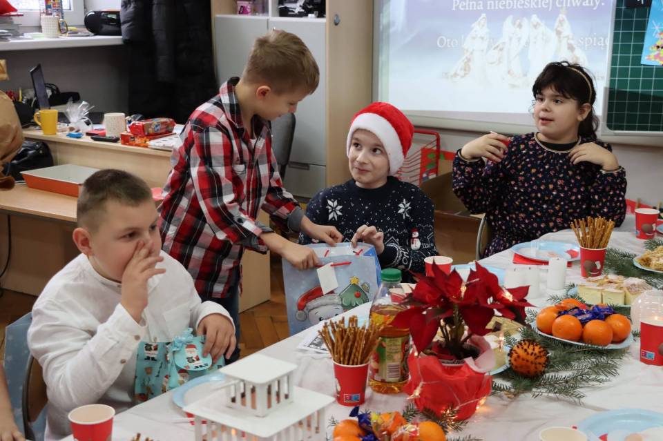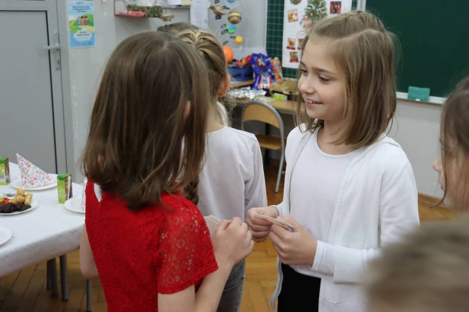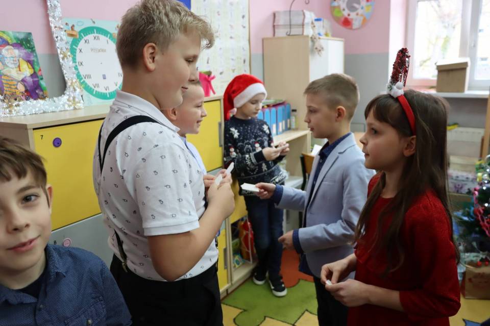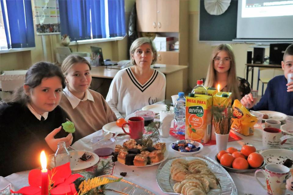 Wigilie klasowe pełne są radości i uśmiechu. Czasami w klasach ósmych ten uśmiech miesza się ze wzruszeniem, że to już ostatni raz. Na stołach pojawiły się wigilijne potrawy, z głośników słychać było kolędy, a uczniowie odwiedzali się wzajemnie składając życzenia nauczycielom i sobie nawzajem. W niektórych klasach Mikołaj szczodrze rozdawał prezenty, w innych zaś był nieprzejednany i ordynował wyczerpujące ćwiczenia fizyczne, śpiew lub recytację.