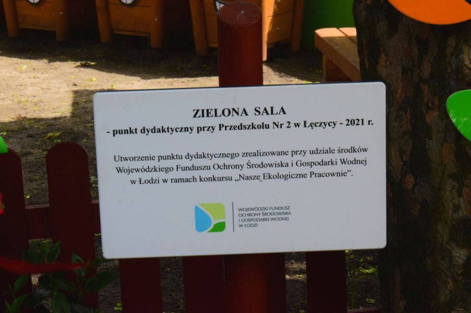„Zielona Sala" to inwestycja dofinansowania z Wojewódzkiego Funduszu Ochrony Środowiska i Gospodarki Wodnej w Łodzi. Całkowita wartość zadania wyniosła 51 006 zł, a kwota dofinansowania wyniosła 45 006 zł.