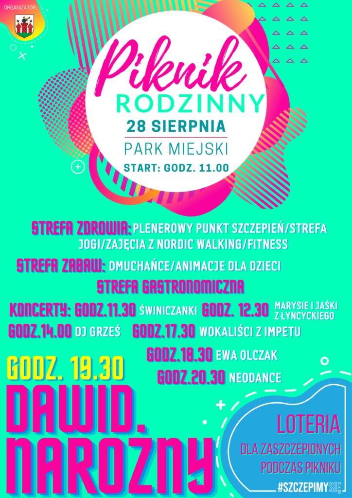 Wydarzenie rozpocznie się już o godzinie 11:00 i potrwa do godzin wieczornych. W programie przygotowano kilka stref: zdrowia, zabaw i gastronomiczną. Nie zabraknie także koncertów, które rozpoczną się już o 11:30. Na początku zaprezentują się lokalne zespoły i artyści. Gwiazdą wydarzenia ma być Dawid Narożny, który jest znany z zespołu Piękni i Młodzi. Narożny aktualnie występuje solo.