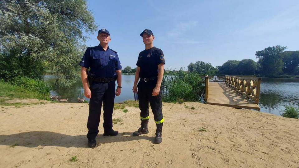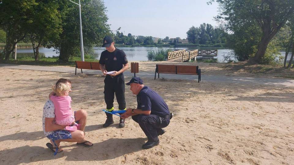 W ramach akcji „Kręci mnie bezpieczeństwo nad wodą" policjanci i strażacy z Państwowej Straży Pożarnej w Łęczycy zawitali nad zalew miejski. Tam, czuwając nad bezpieczeństwem odwiedzających, edukowali jak właściwie korzystać z uroków takich miejsc.